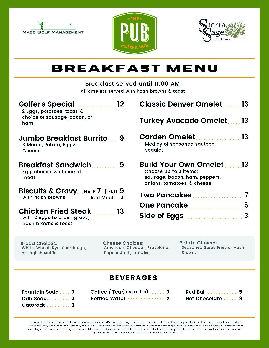 Experience The Pub’s nostalgic atmosphere featuring a full-service bar and made to order Pub menu serving great breakfast and lunch options. Enjoy our friendly service and unwind with friends, catch a game, or enjoy our expansive patio, which is perfect for relaxing after a round of golf.